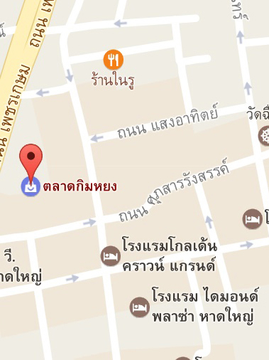 ศูนย์การค้ากิมหยง ถ. แสงอรุณ ต. หาดใหญ่ อําเภอหาดใหญ่ จ. สงขลา 90110